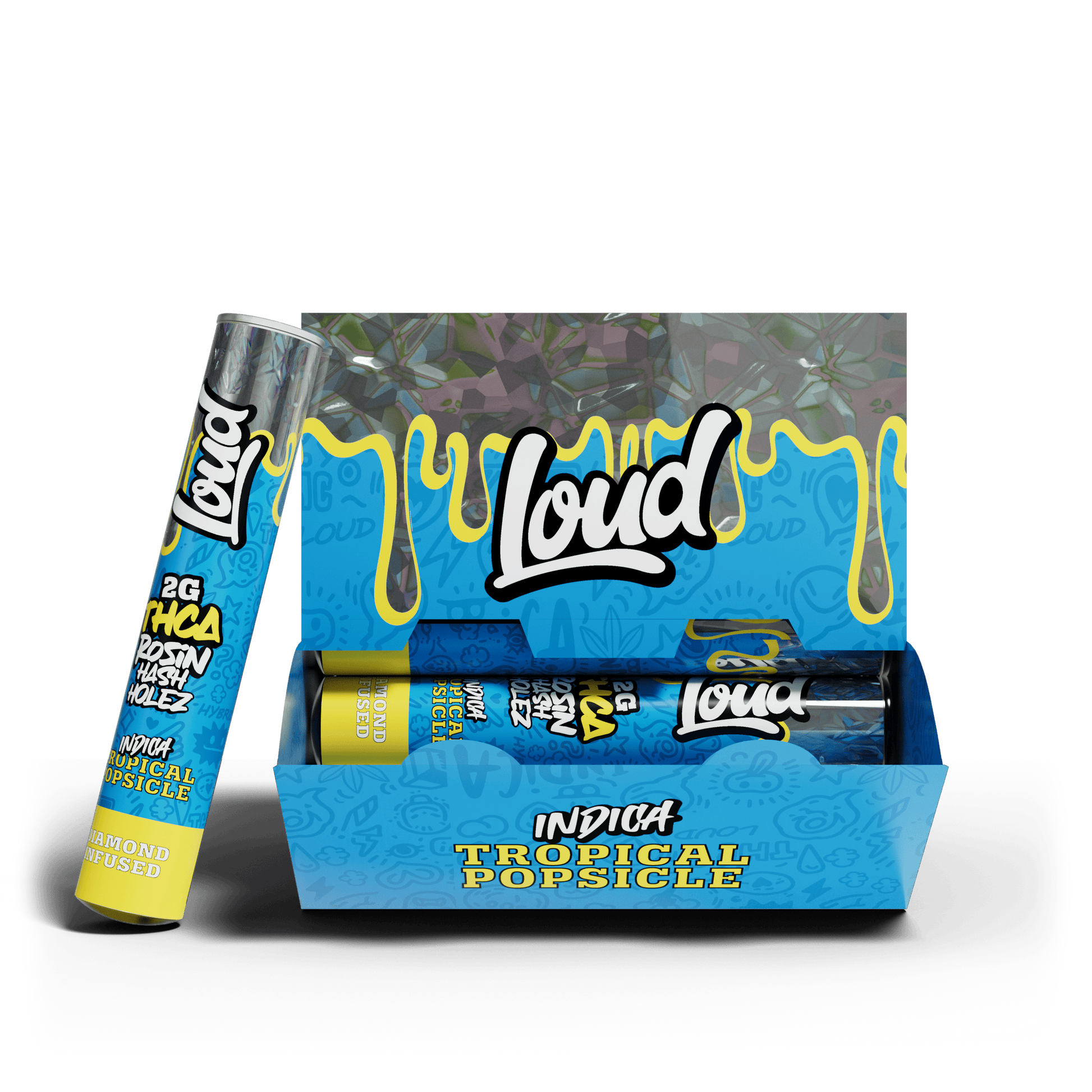 Check out the brand new 2G THC-A Premium Hash Holes from LOUD! Each Hash hole is packed with Diamond Infused Premium THCA flower and a potent Hash center!