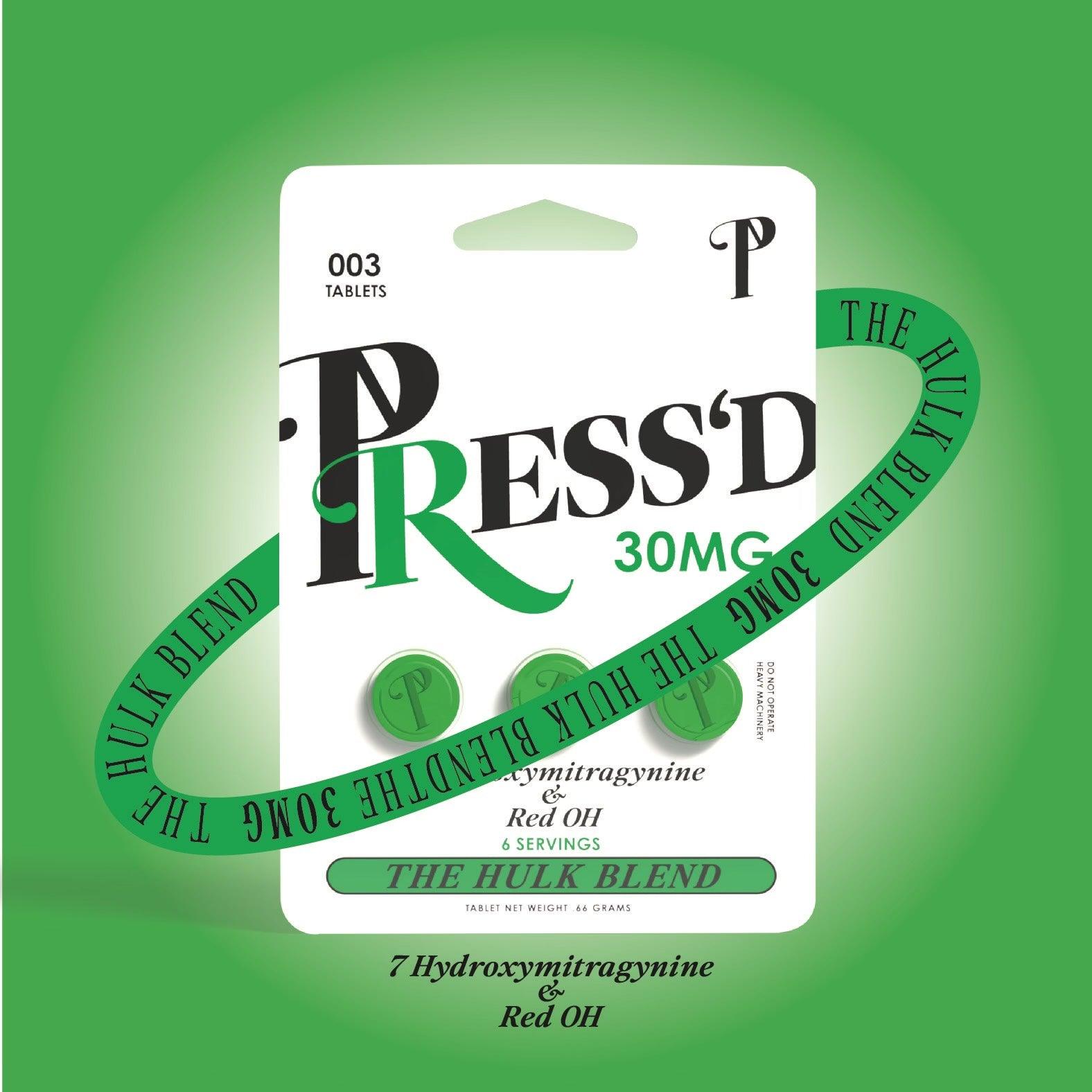 The creators of Press'd have done it again by combining the two best-selling kratoms into one! They have taken the Press'd 7-Hxy blend and combined it with the potent Press'd Red OH to create The Hulk Blend Press'd 30mg Tablets!