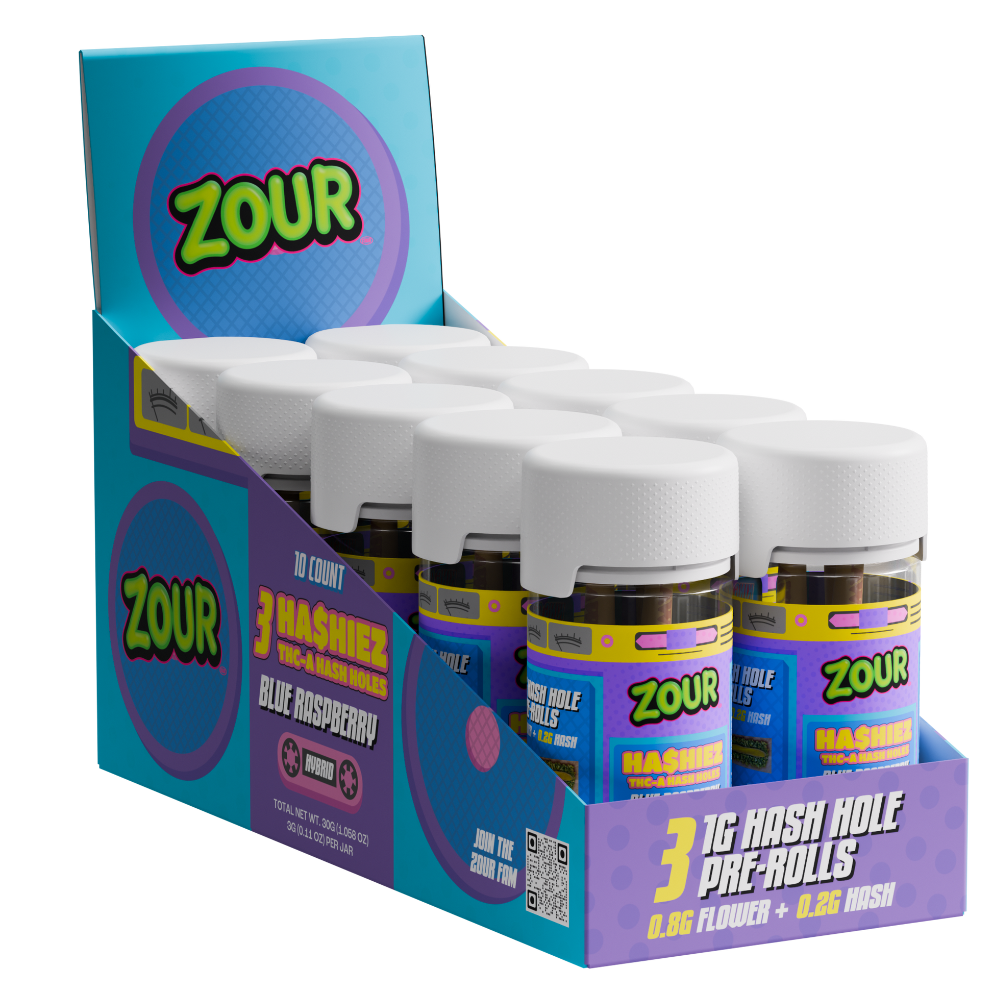 Zour Stash 1GX3pk THC-A Ha$hiez Pre-rolls (10pk Display)